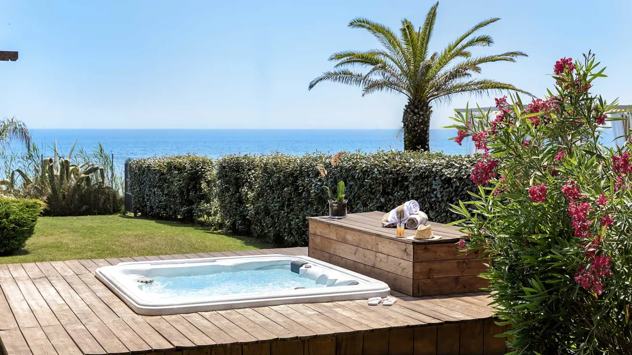 La Blue Sea Junior Suite è completata dalla presenza di vasca idromassaggio Jacuzzi all’aperto.